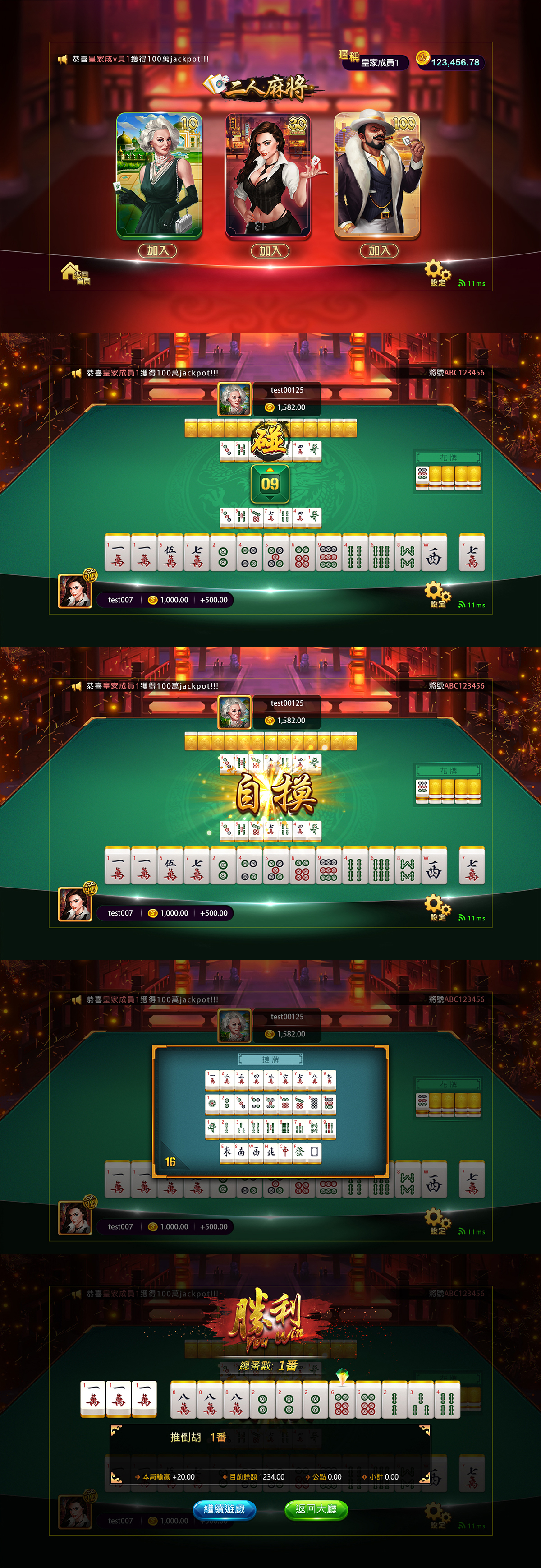 二人麻將 棋牌UI設計